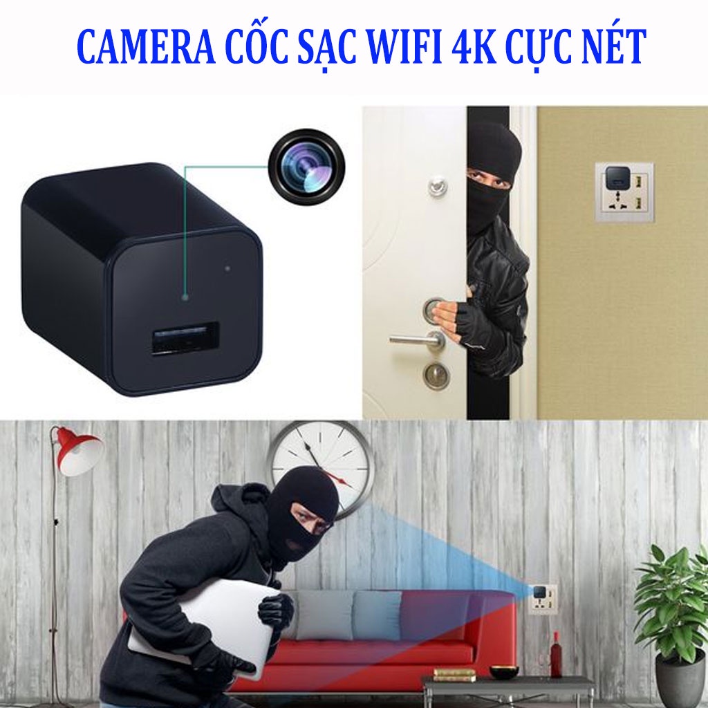Camera cốc sạc điện thoai, kết nối wifi xem từ xa Camera Wifi mini chống trộm kiêm cốc sạc USB góc nhìn 120 độ