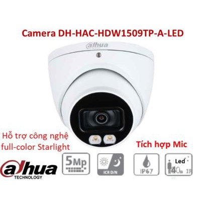 Cameras & Flycam > Camera giám sát > Camera giám sát kết nối internet || [Mã 273ELHA100K0 hoàn 7% đơn 500K] Camera Dome 5MP Fullcolor Dahua DH-HAC-HDW1509TP-LED 2 LED (DSS bảo hành 24T)Còn hàng