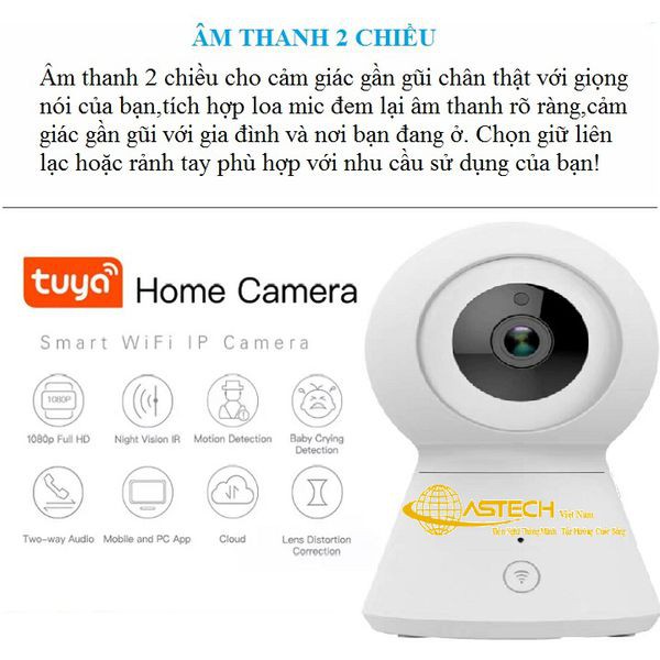 Đặc điểm nổi bật Camera wifi thông minh 360 độ FULL HD 1080P sử dụng APP TUYASMART, GOOGLE HOME, AMAZON ALEXA Model TA-R9820