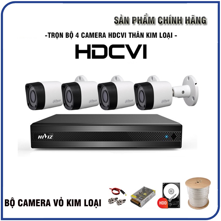 Bộ Camera giám sát HDCVI cao cấp, than vỏ kim loại, hồng ngoại ban đêm sáng, đầy đủ đủ Phụ kiện Lắp đặt