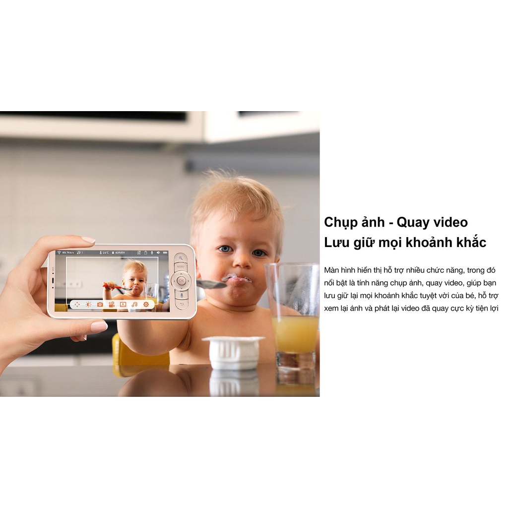Camera giám sát QCT baby monitor kèm màn hình hiển thị - cảm biến nhiệt độ, độ ẩm, cảnh báo trẻ em khóc, đàm thoại