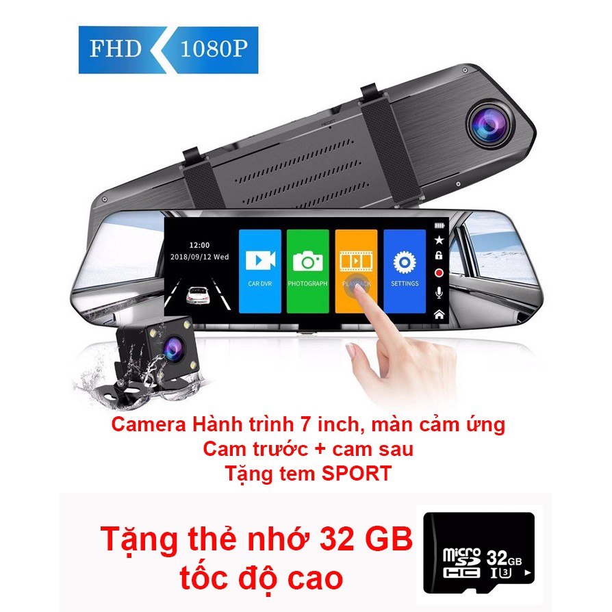 Camera hành trình màn hình cảm ứng, 7inch, Full HD, tặng thẻ nhớ 32GB tốc độ cao