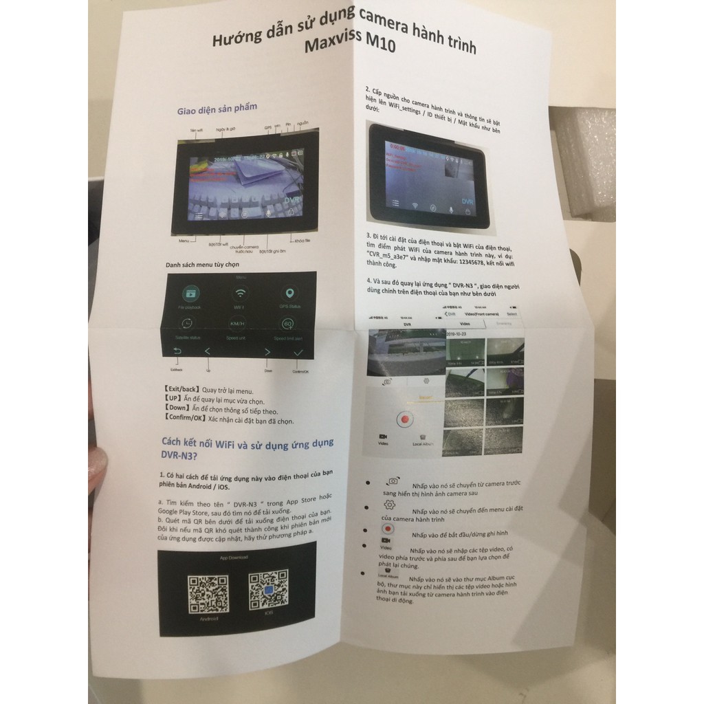 Tải và cài đặt ứng dụng “DVR-N3” trên Appstore hoặc Google Store để dễ dàng xem trực tiếp video và quản lý từ camera hành trình Maxviss M10 gồm camera trước và sau.