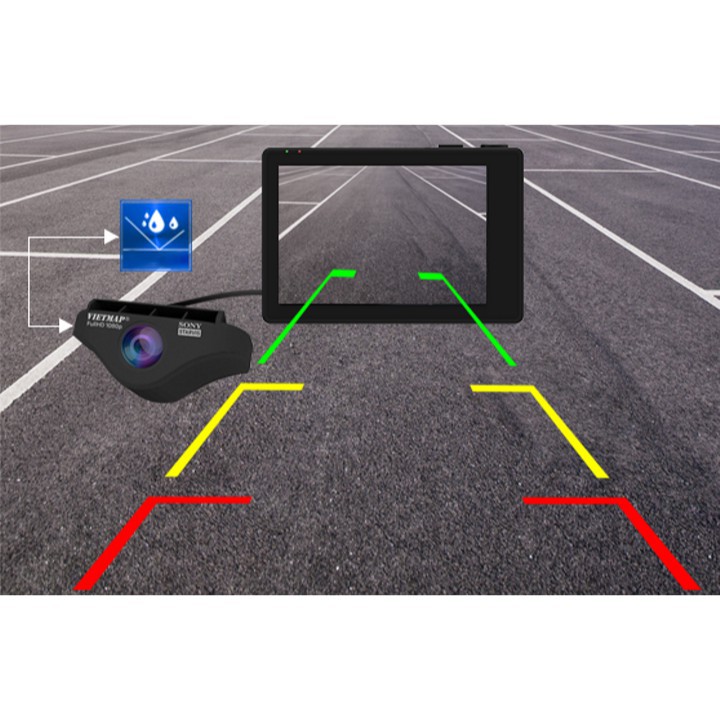 Camera Sau VietMap C65 với thiết kế gắn ngoài, vật dụng khoa học không thấm nước cùng lúc tương trợ camera lùi rẻ trong mọi điều kiện ánh sáng, tự động chuyển sang hình camera lùi lúc trả về số R.