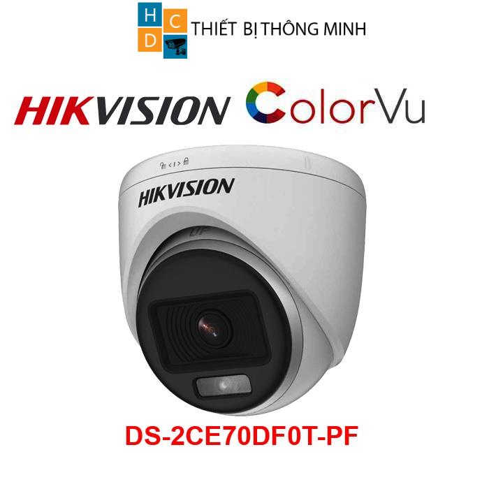 Camera Hikvision 2mp có màu ban đêm DS-2CE70DF0T-PF bán cầu đèn trợ sáng 20m chính hãng bảo hành 24 tháng