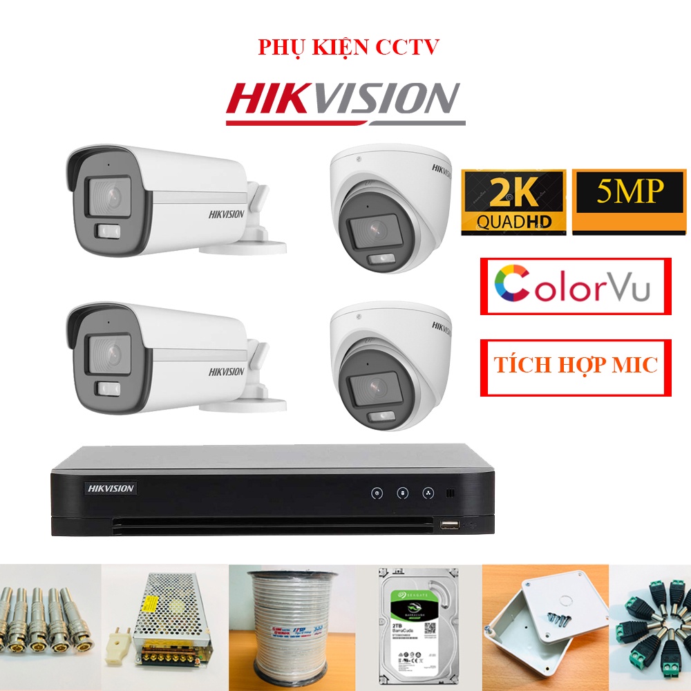 Bộ camera Hikvision 5mp có màu ban đêm 24/24 tích hợp mic thu âm hàng chính hãng