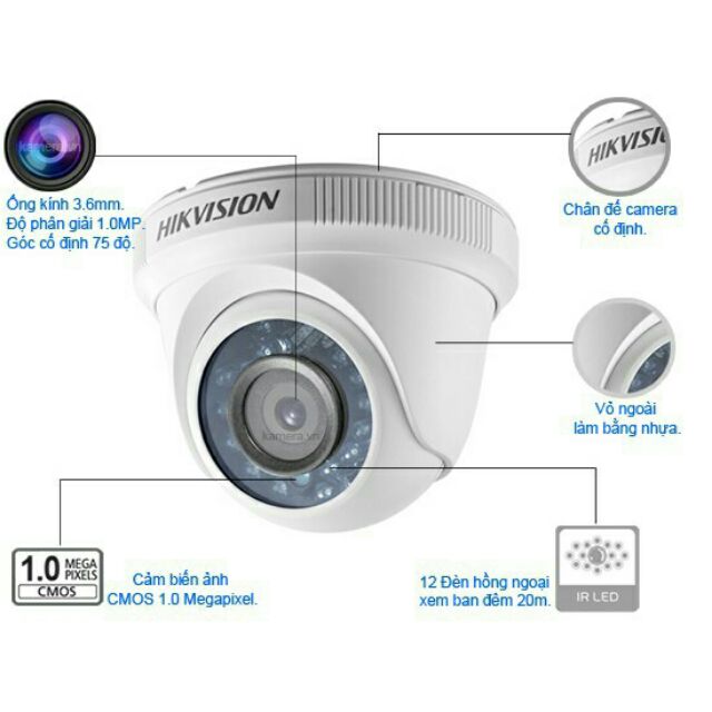Giới thiệu Camera Hikvision TVI 1.0MP DS-2CE56COT-IRP - Vỏ Nhựa