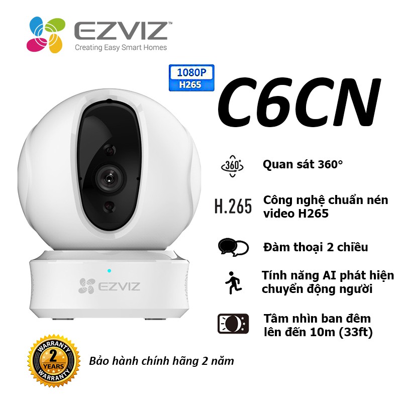 Cameras & Flycam > Camera giám sát > Camera giám sát kết nối internet || Camera IP - Camera Wifi EZVIZ C6CN 1080P - C6N 4Mp 2K, Đàm Thoại 2 Chiều - Xoay 360 Độ Theo Chuyển Động, hàng chính hãngCòn hàng