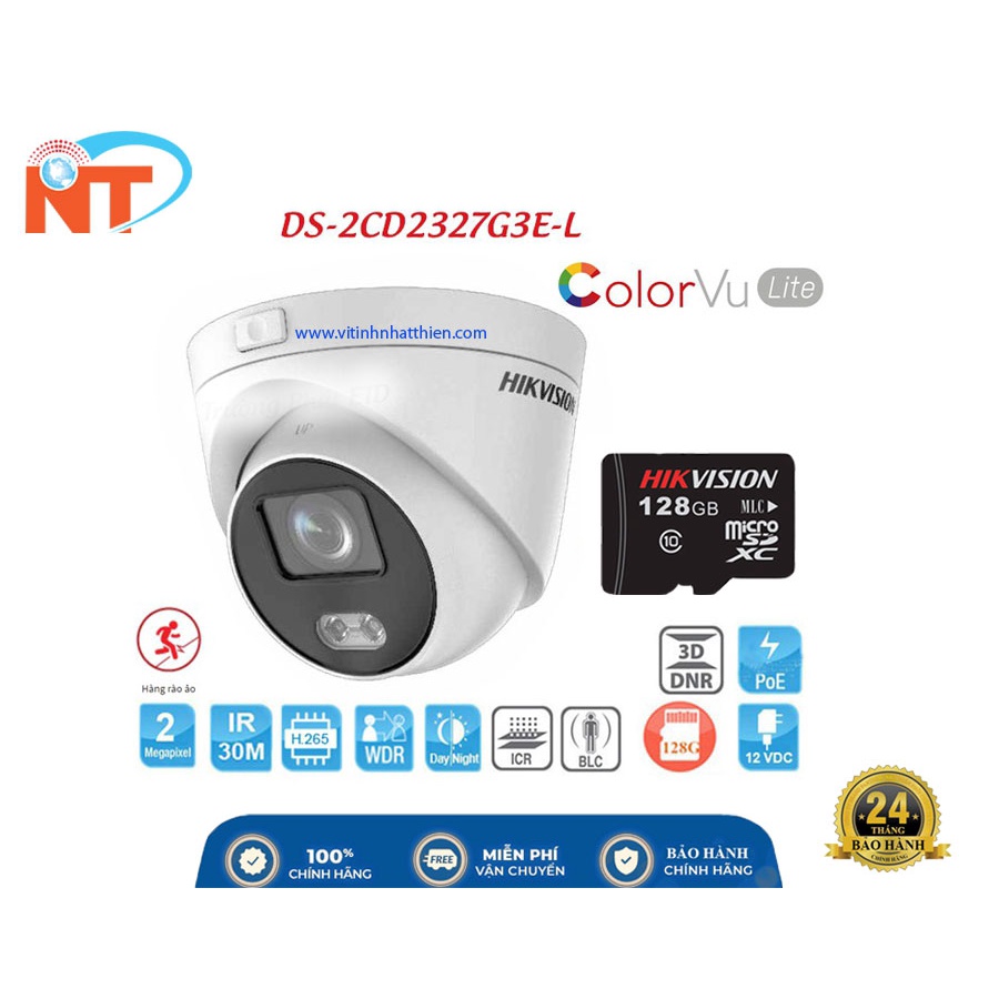 CAMERA IP DOME COLORVU HIKVISION DS-2CD2327G3E-L 2.0 MEGAPIXEL, HỖ TRỢ THẺ NHỚ VÀ POE