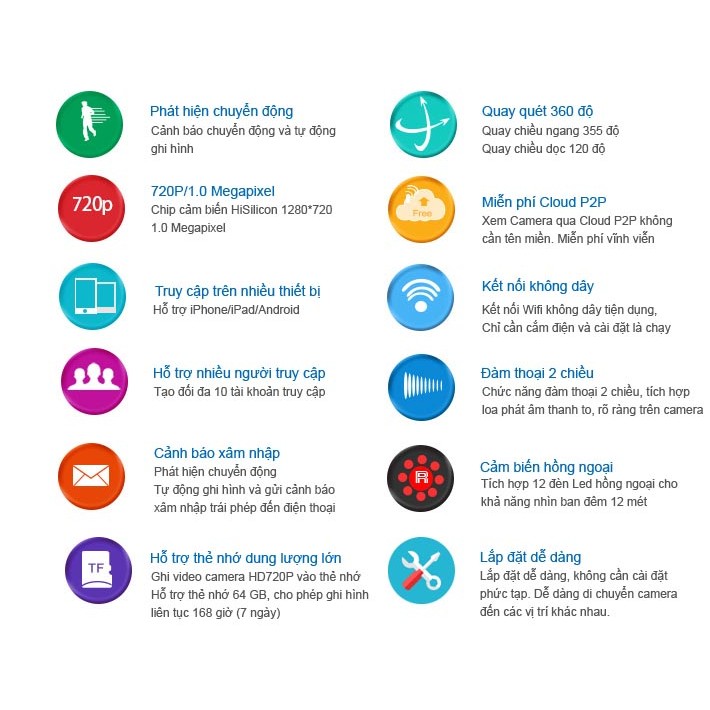Là một trong những tính năng nổi bật của chiếc camera IP không dây, nó có thể phát hiện chuyển động trong vòng 10m lập tức thông báo đến điện thoại của bạn kèm một đoạn video từ 1 đến 3 phút tùy bạn setup.