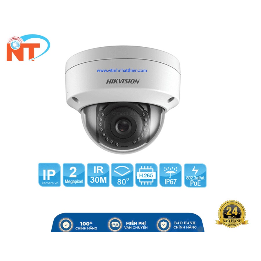 Camera IP HIKVISION DS-2CD1123G0E-I 2.0 Megapixel - Hỗ trợ PoECảm biến hình ảnh: 1/2.8 inch progressive scan CMOS Độ phân giải: 1920 × 1080@25fps Chuẩn nén hình ảnh: H.265, H.264 Ống kính: 2.8 mm/4 mm fixed focal lens Tầm quan sát hồng ngoại: 30 mét Hỗ trợ 2 luồng dữ liệu Chức năng chống ngược sáng DWDR Chức năng giảm nhiễu kỹ thật số 3D DNR Tiêu chuẩn chống bụi và nước: IP67