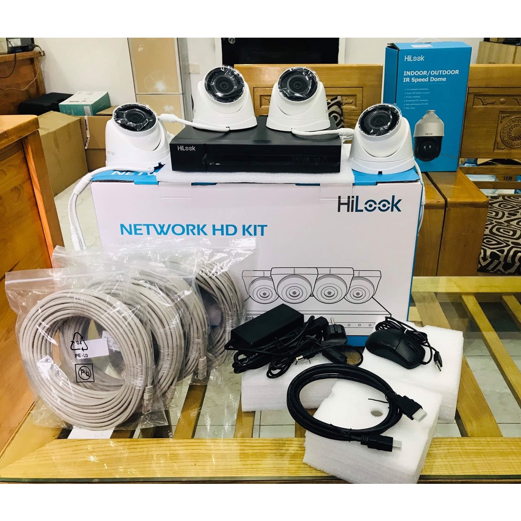Bộ Camera IP HILOOK IK-4042BH-MH/P Độ Phân Giải 2MP FullHD, Gồm 1 Đầu Ghi Hình Hỗ Trợ 4 Cổng POE, 4 Camera, 4 Bộ Dây Tín Hiệu, 1 Dây HDMI - Hàng Chính Hãng