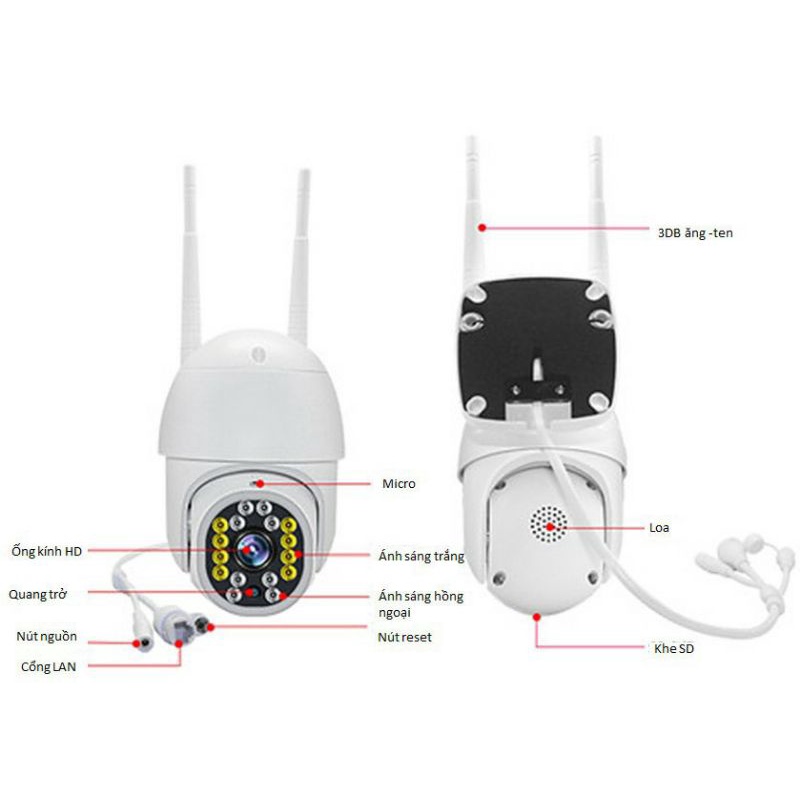 - Bạn có thể kết nối camera với wifi hoặc dây mạng LAN đều được vì camera được trang bị thêm cả dây cắm cổng mạng LAN