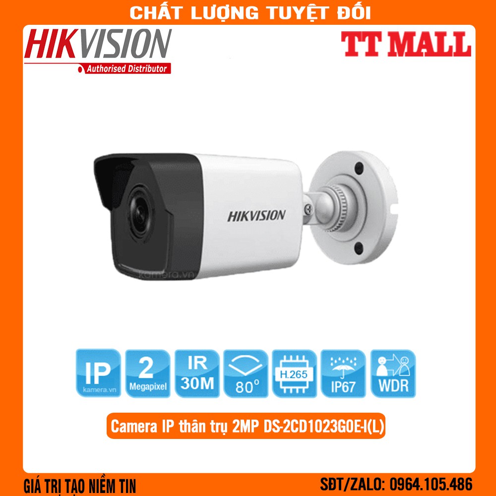 [Mã ELHAMS5 giảm 6% đơn 300K] [CAMERA IP POE HIKVISION] Camera Hikvision DS-2CD1023G0E-I(L) FULLHD H265+