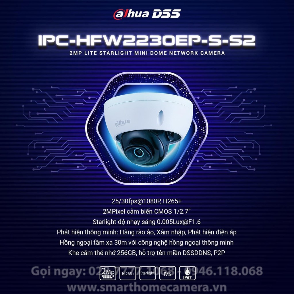 Giới thiệu Camera IP Starlight 2.0MP DAHUA HDBW2230EP-S-S2 (tem DSS)