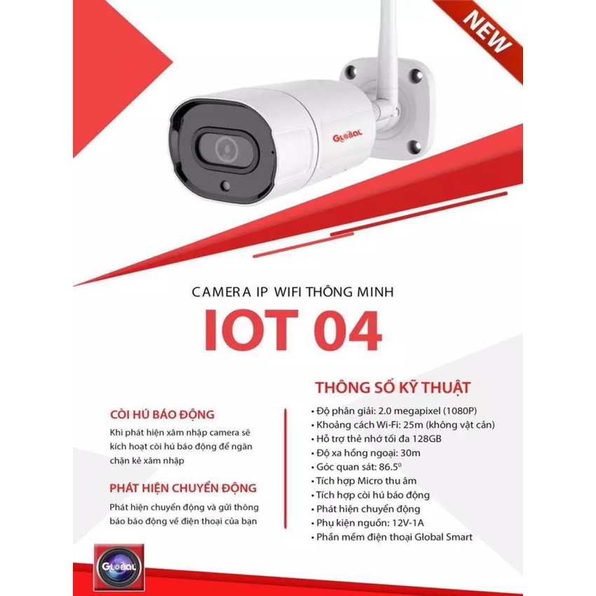 Cameras & Flycam > Camera giám sát > Camera giám sát kết nối internet || [Mã 273ELHA100K0 hoàn 7% đơn 500K] CAMERA IP WIFI 2.0 MEGAPIXEL GLOBAL IOT04 CHÍNH HÃNG - SỬ DỤNG NGOÀI TRỜICòn hàng