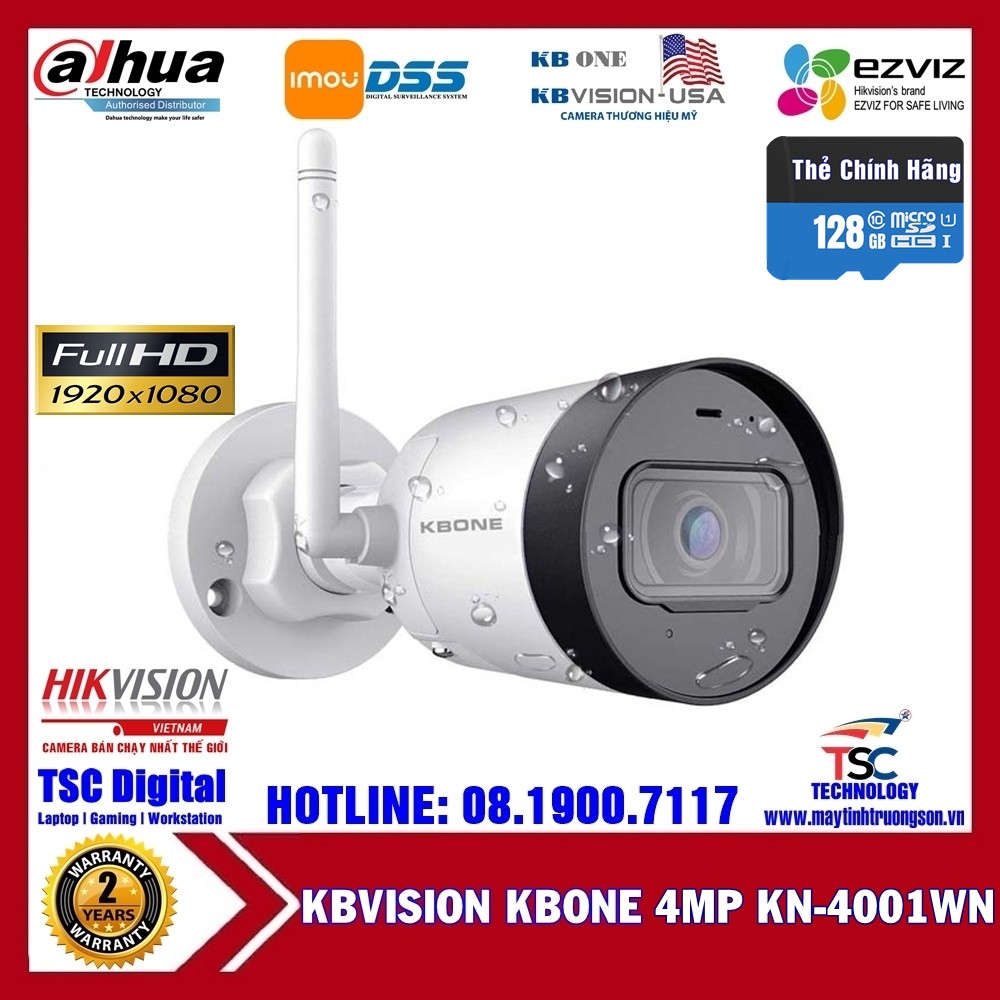 Camera IP Wifi KBONE KN-4001WN KN-B41 4.0MP Full HD 1920x1080 Kèm Thẻ Nhớ Lưu Trữ | Camera Ngoài Trời Chịu Mưa Nắng