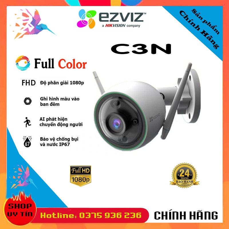 Giới thiệu CAMERA IP WIFI Ngoài Trời EZVIZ C3N C3W PRO, C3X MÀU ĐÊM, AI Thông minh - C3WN 2MB 1080P Full HD - Chính Hãng BH24TH