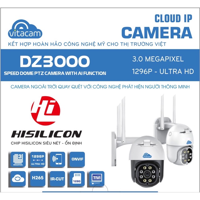 Cameras & Flycam > Camera giám sát > Camera giám sát kết nối internet || Camera IP Wifi Ngoài Trời Vitacam DZ3000 pro - ULTRA HD Siêu Nét 3.0MPCòn hàng