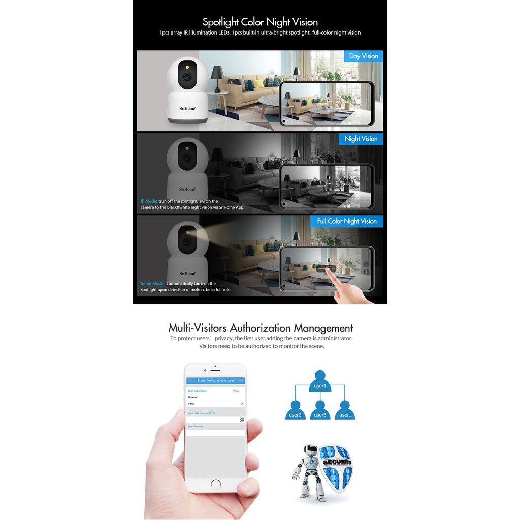 Camera IP Wifi SriHome SH038 4.0MP Super HD 2K 2560P, Hỗ trợ Wifi 2.4/5G, xoay 355 độ (Trắng) - 4 Phân Loại