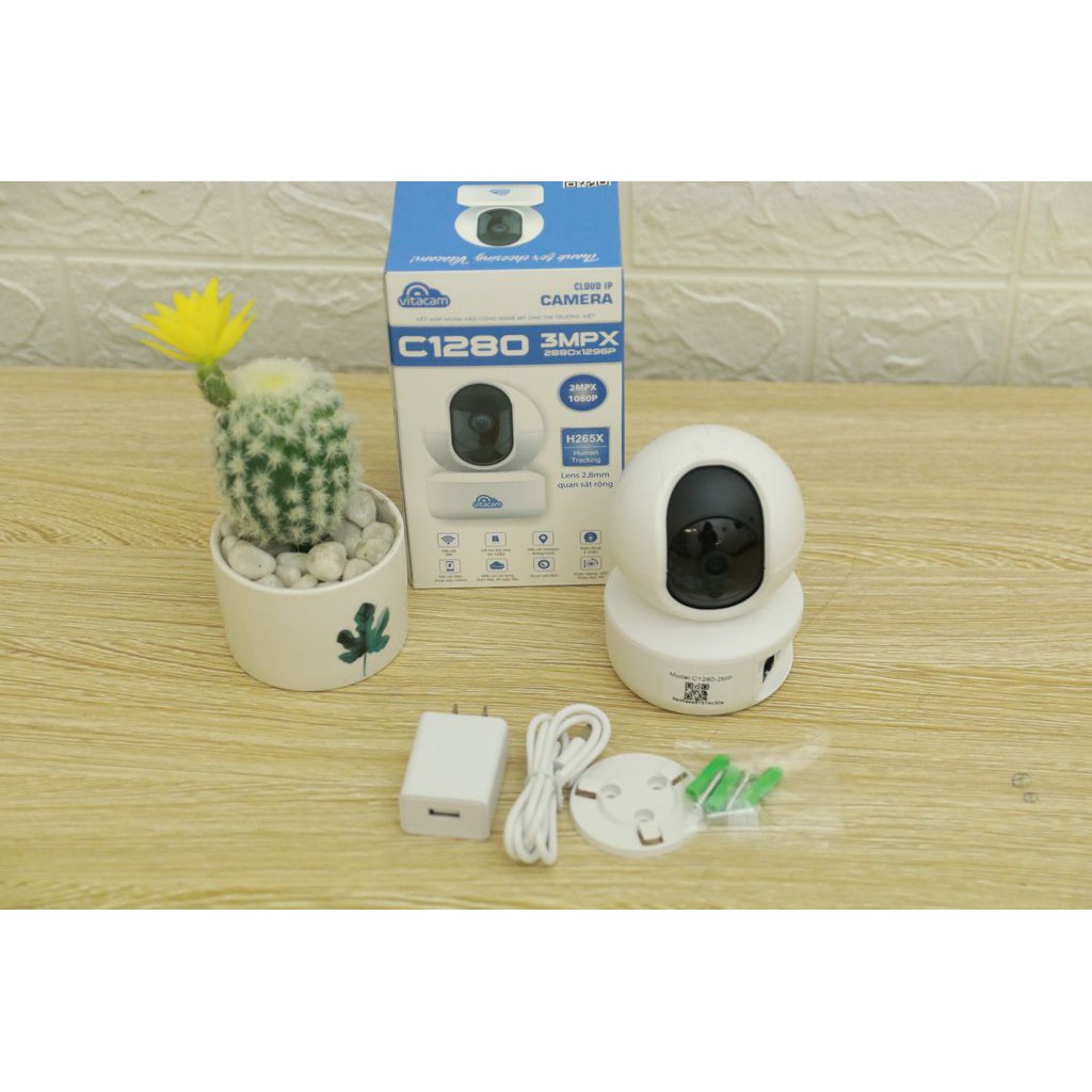 VITACAM C1280 2.0MP - Độ phân giải 2MPX chuẩn FullHD - Lens 2.8mm góc quan sát siêu rộng. Công nghệ AI, xoay 360 độ.