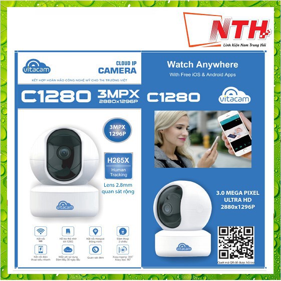 Giới thiệu 𝑺𝑰𝑬̂𝑼 𝑹𝑶̃ 𝑵𝑬́𝑻 Camera IP Wifi Vitacam C1280 3.0MP FullHD+ 1536P hồng ngoại ban đêm - đàm thoại 2 chiều (Trắng)