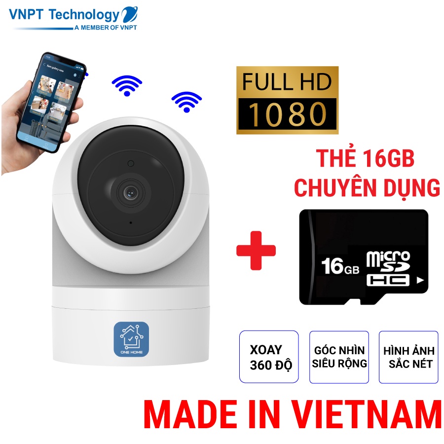 Camera IP Wifi VNPT Technology ONE HOME HVIP01 xoay 360 quan sát rõ ngày và đêm kèm thẻ 16Gb hàng Việt Nam