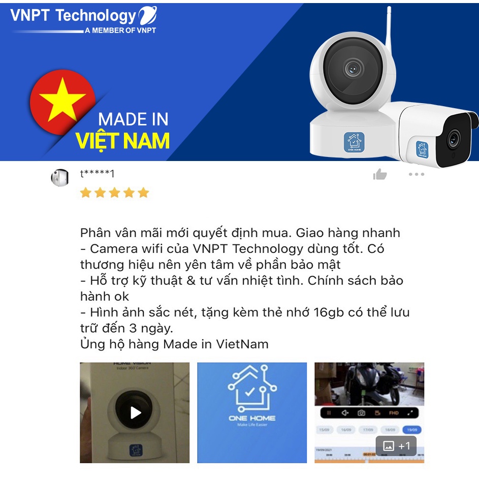 Giới thiệu Camera IP Wifi VNPT Technology ONE HOME HVIP01 xoay 360 quan sát rõ ngày và đêm kèm thẻ 16Gb hàng Việt Nam