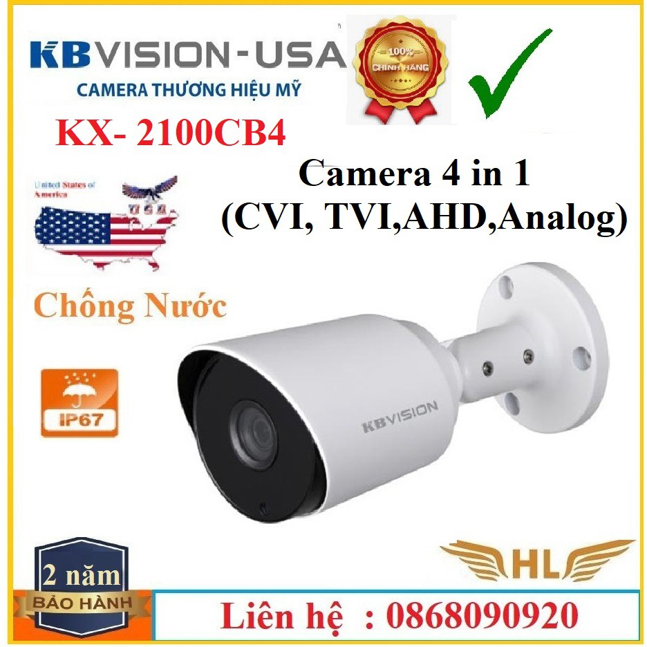 Camera Kbvision KX 2100CB4 Full HD 2Mp Ngoài Trời, 7104SD6 7108SD6 A2100cb4- Hàng Chính Hãng