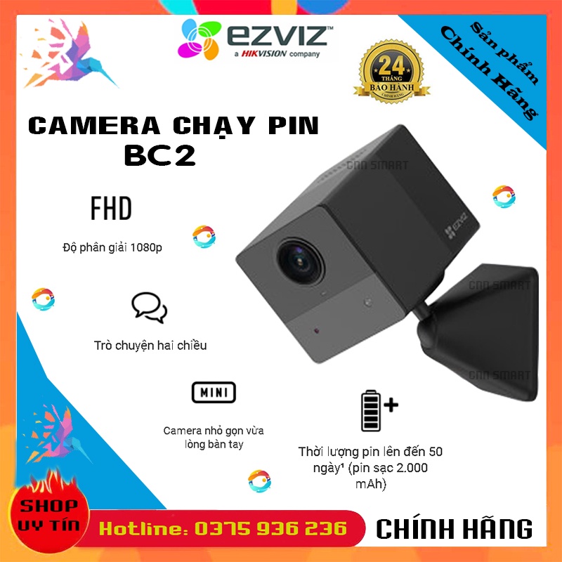 ✅Camera MINI IP WIFI chạy PIN không dây trong nhà EZVIZ BC2 2M: