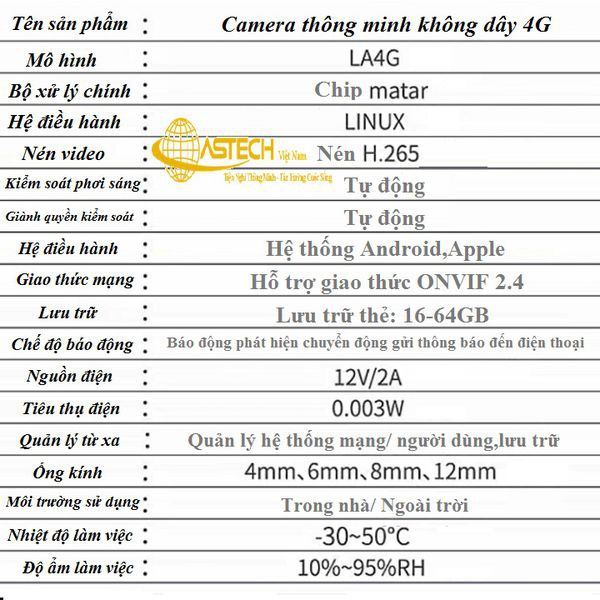 Đặc điểm kỹ thuật : Camera wifi ngoài trời Smart Battery năng lượng mặt trời 4G/ wifi