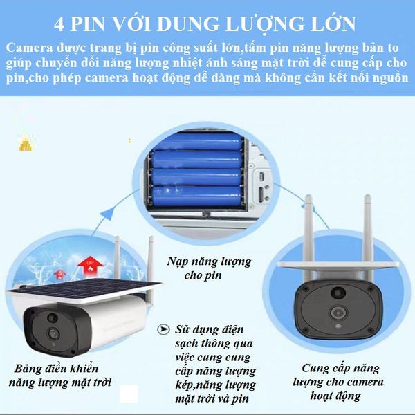 - Sản phẩm này là một camera giám sát ngoài trời không cần cấp nguồn điện, không cần đi dây, cài đặt đơn giản và dễ dàng để sử dụng.