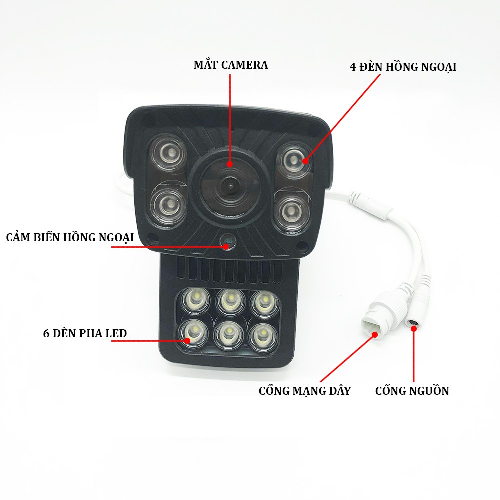 - Ống kính 3.6mm, góc quan sát rộng.