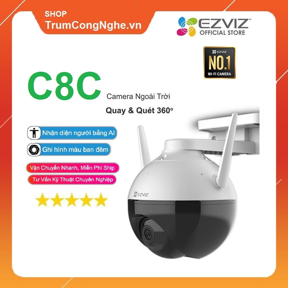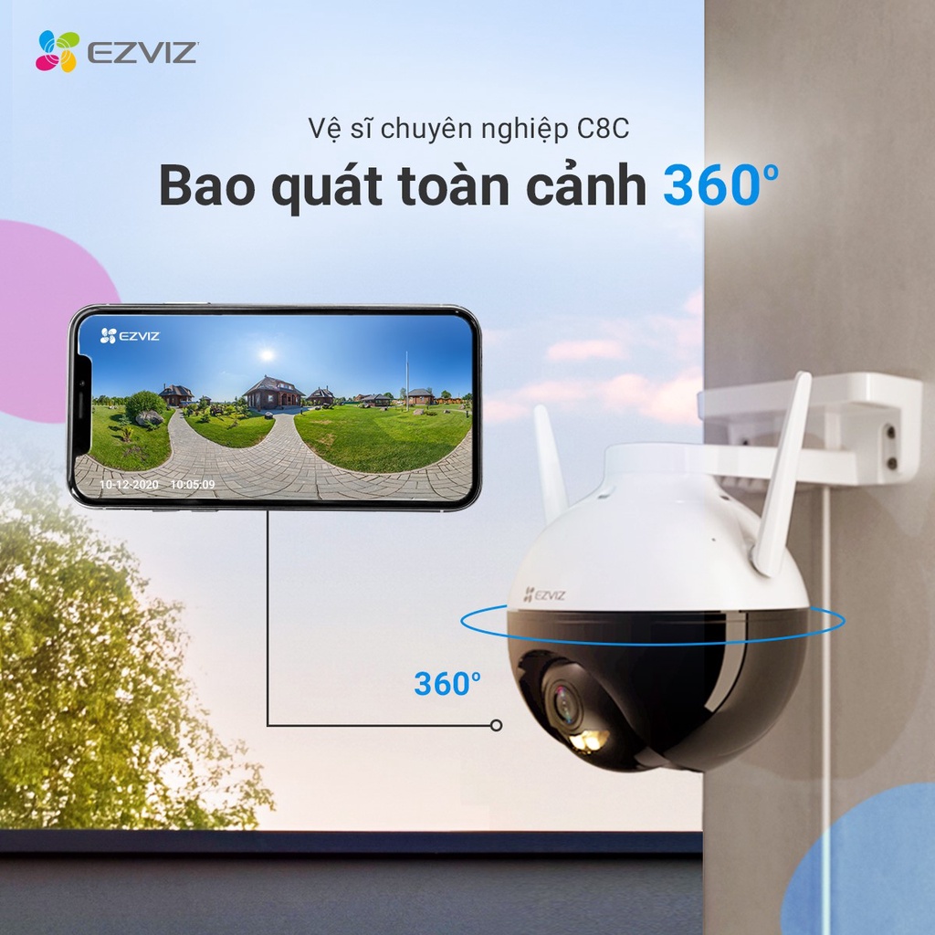 Camera ngoài trời EZVIZ C8C độ phân giải nét 2MP 1080P Xoay 360 độ , nhận diện người AI thông minh