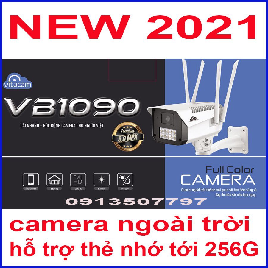 CAMERA VITACAM VB1090 CAMERA QUAN SÁT ĐÊM ĐẦY MÀU SẮC HỆ THỐNG 10 ĐÈN LED ĐỘ SÁNG CÔNG SUẤT CAO, ĐỘ PHÂN GIẢI 3.0 MPX CHUẨN ULTRA HD, GÓC QUAN SÁT RỘNGƯU ĐIỂM KHÔNG CẦN ĐẦU THU, KHÔNG CẦN Ổ CỨNG, CÀI ĐẶT NHANH CHÓNG, XEM LẠI MỌI LÚC MỌI NƠI