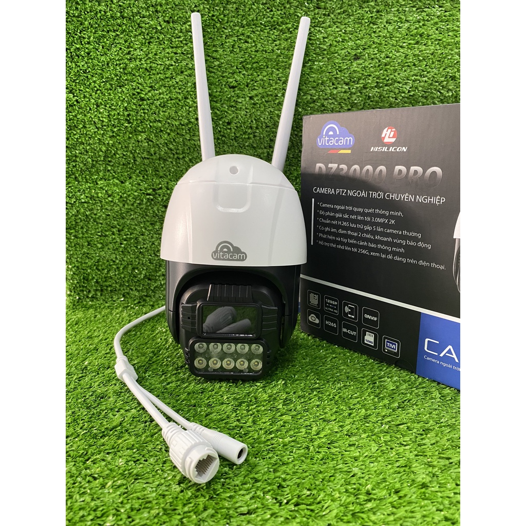 Năm 2020, Vitacam tung ra thị trường dòng camera ngoài trời thông minh Vitacam DZ3000 pro 3.0MPX đáp ứng đầy đủ yêu cầu thiết yếu nhất của một chiếc camera ngoài trời với chất lượng hình ảnh sắc nét đạt Full HD 1296P, độ phân giải camera 3.0Mpx, đặc biệt hỗ trợ các công nghệ camera ip thông minh kết nối wifi, quay quét 355 độ ngang, 100 độ dọc giúp chiếc Vitacam DZ 3000 Pro có góc nhìn toàn cảnh siêu rộng.THÔNG SỐ KỸ THUẬT: