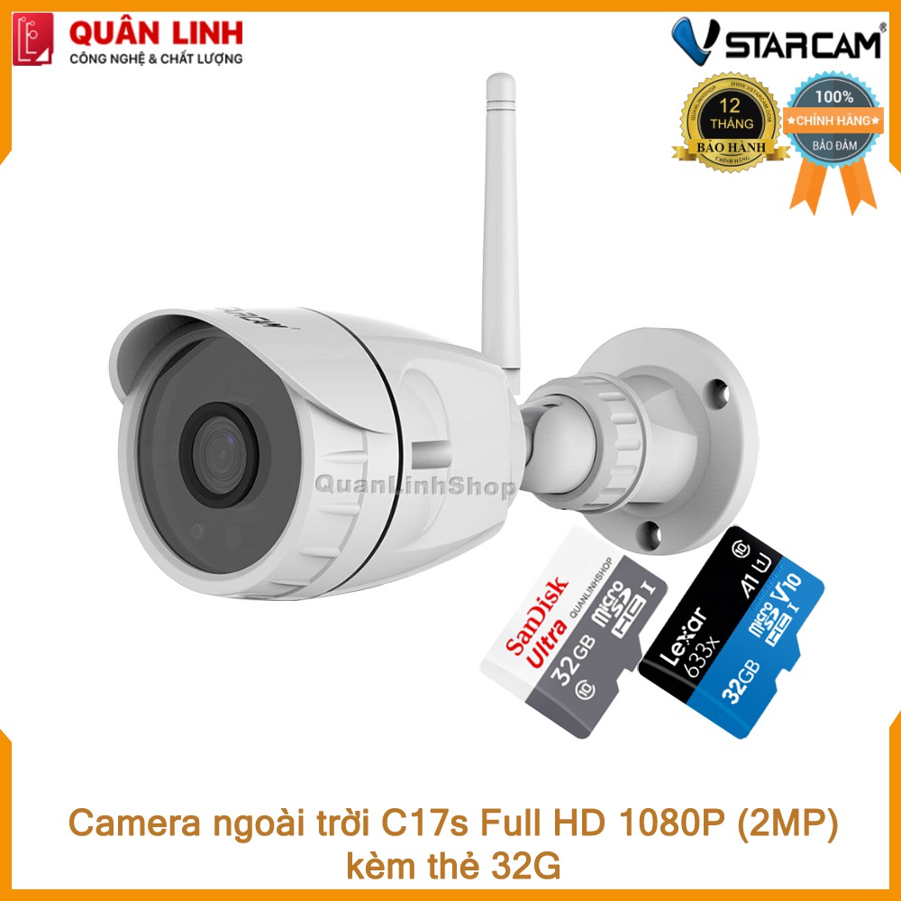 THÔNG TIN SẢN PHẨM- Tên sản phẩm: Camera ngoài trời Vstarcam C17s Full HD 1080P kèm thẻ 32GB