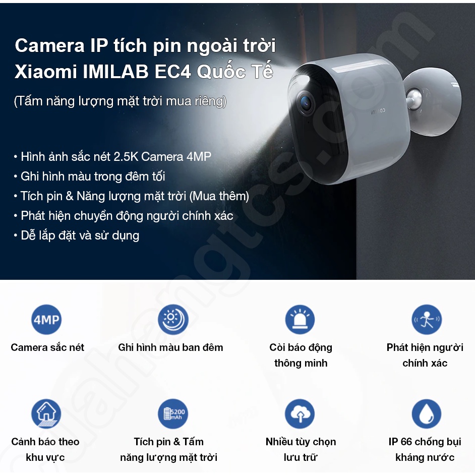 Camera ngoài trời Xiaomi Imilab EC4 2.5k nhìn màu ban đêm quốc tế - Camera outdoor IMILAB EC4 2.5k, tích pin