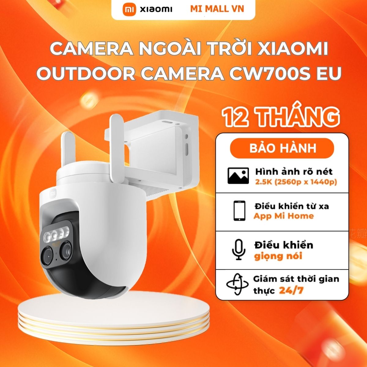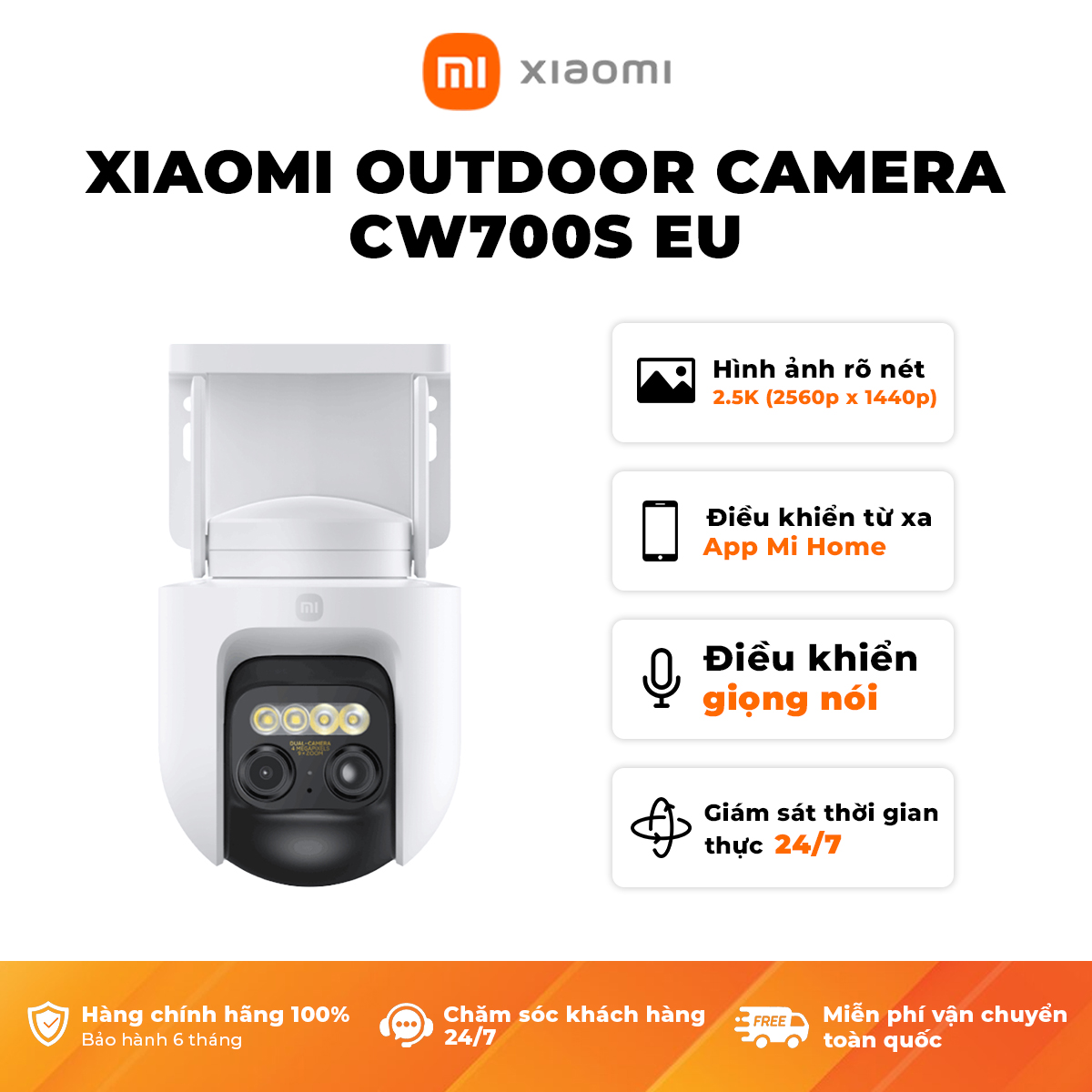 Những tính năng đặc biệt của camera outdoor Xiaomi CW700STrang bị ống kính kép, có khả năng ZOOM quang học đến 9XGhi hình 2.5K siêu nét, nhìn đêm có màu như ban ngàyThiết kế xoay PTZ, cho phép qua...- Giao hàng toàn quốc