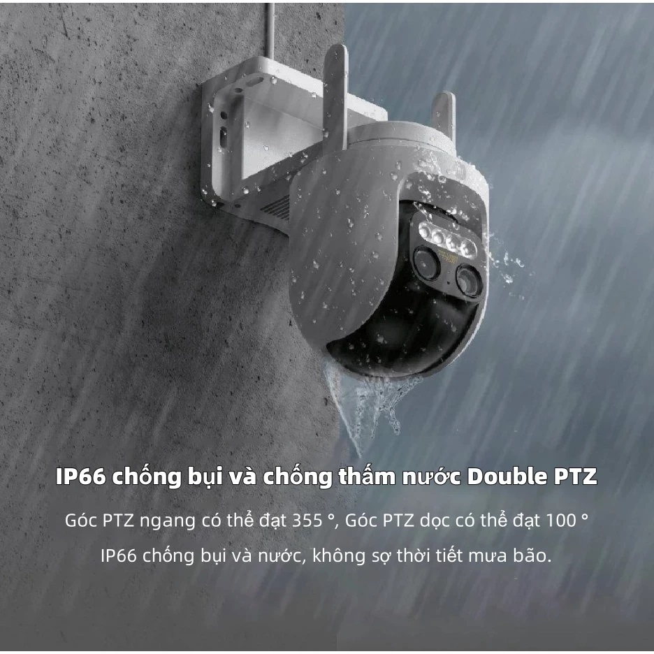 - Thiết kế xoay PTZ, cho phép quay toàn cảnh, chống nước IP66