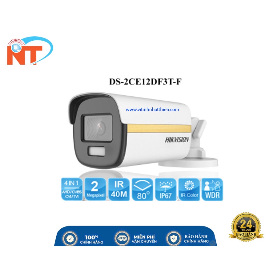Camera quan sát analog HD Hikvision DS-2CE12DF3T-F (Camera ColorVu thế hệ mới, 2 MP )1. ƯU ĐIỂM:
