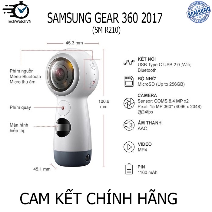 Điện Thoại & Phụ Kiện > Phụ kiện > Khác || [Mã 273ELHA100K0 hoàn 7% đơn 500K] Camera Samsung Gear 360 2017 DM (SM-R210)Còn hàng