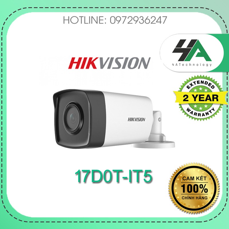 Camera Thân 2MP analog TVI Hikvision 17D0T-IT5 16D0T-IT5 (chính hãng Hikvision Việt Nam)