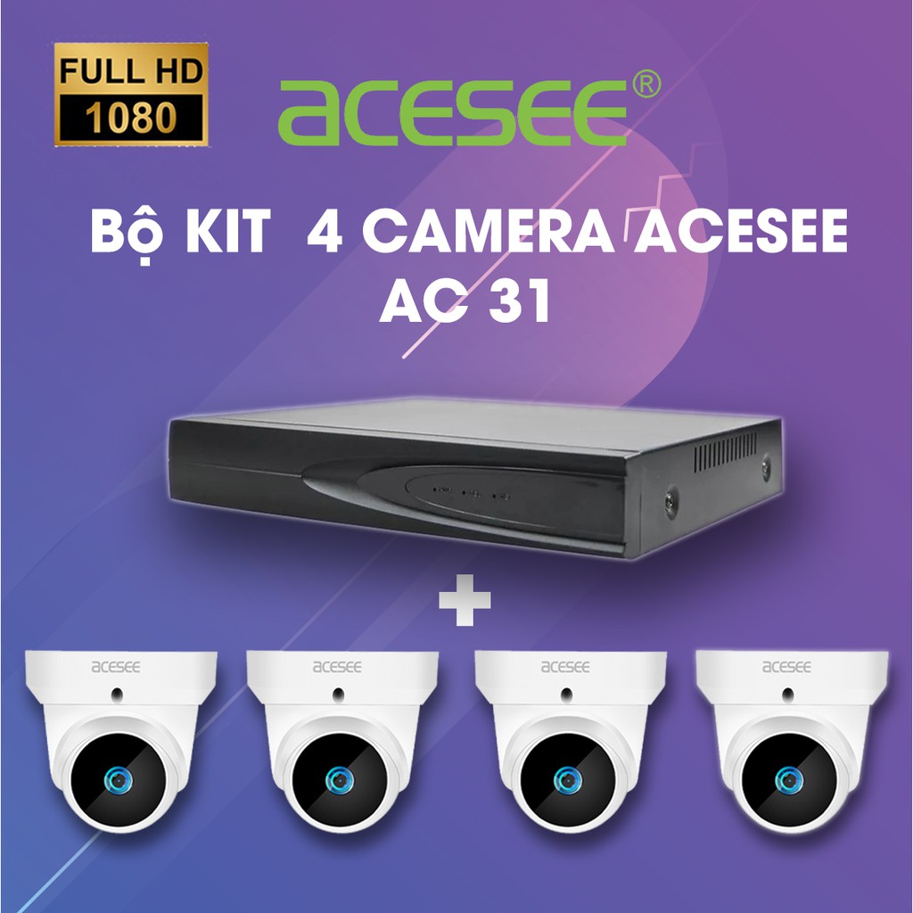 Bộ camera wifi 4 mắt Acesee 2.0, bộ camera wifi kit, NVR kit tặng cục phát wifi