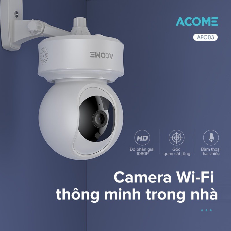 Camera wifi ACOME APC03 - camera 360 độ phân giải full hd 1080p, tương thích tuya smart life, bh 12 thángMã sản phẩm: APC03