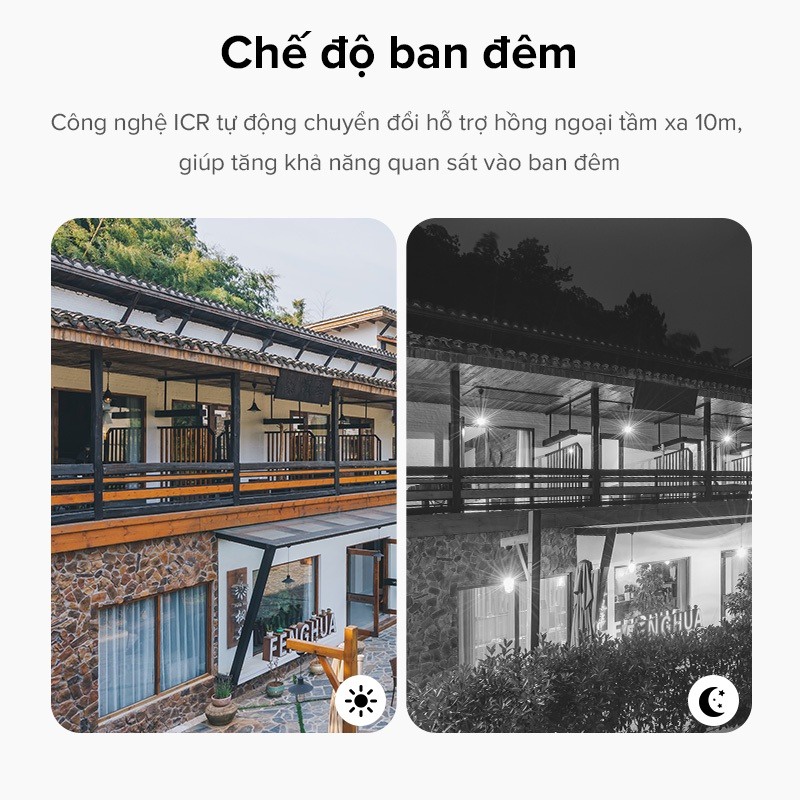 Chế độ ban đêm: Công nghệ ICR tự động chuyển đổi hỗ trợ hồng ngoại tầm xa 10 mét giúp tăng khả năng quan sát vào ban đêm.