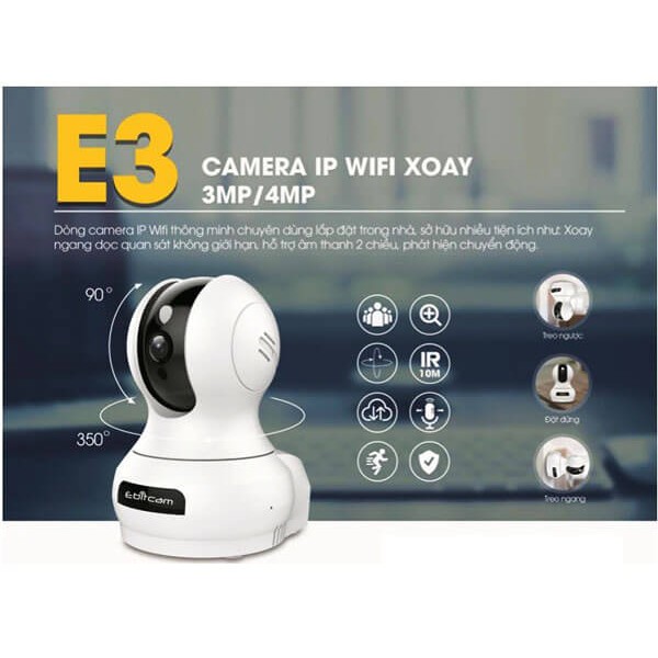 Cameras & Flycam > Camera giám sát > Camera giám sát kết nối internet || Camera Wifi Ebitcam E3 Full HD 1080P 2MP - Phát Hiện Chuyển Động, Đàm Thoại 2 Chiều, Xoay 360, Kèm thẻ 32GB/64GB, HÀNG CCòn hàng