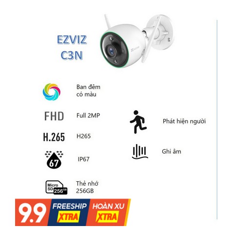 Camera Wifi Ezviz C3N 1080p 2.0M có màu ban đêm [hàng chính hãng bh 24 tháng]