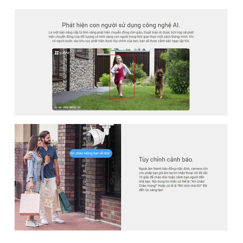 + AI Thông Minh phân biệt giữa người và các vật thể khác để tránh báo động giả .