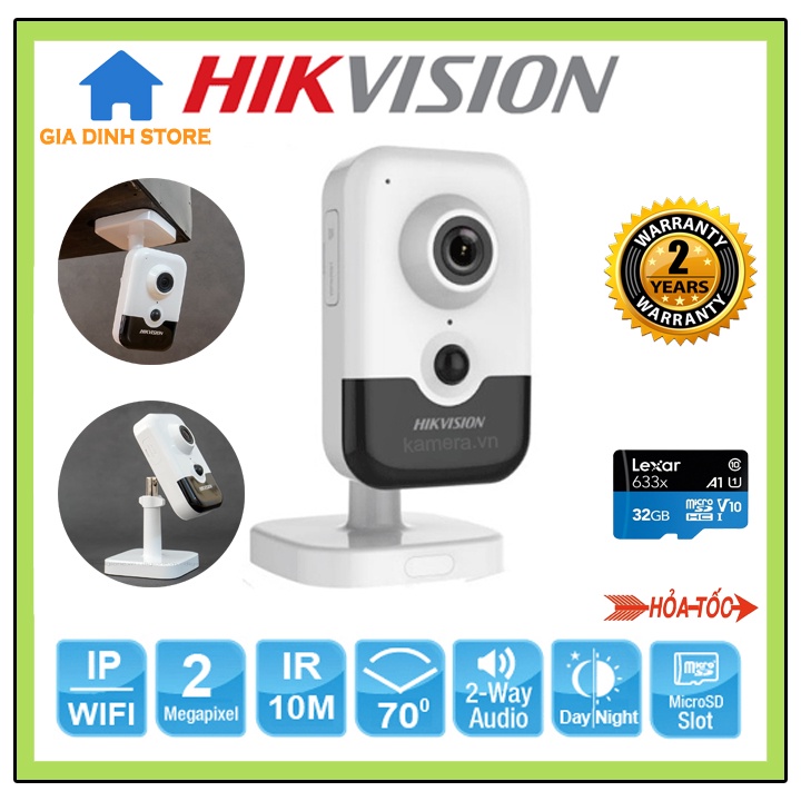 CAMERA IP HIKVISION DS-2CD2421G0-IW là dòng camera wifi (không dây) công nghệ mới 2021 của Hikvision, thiết kế thẩm mỹ nhỏ gọn, chắc chắn tính ổn định cao, camera có độ phân giải Full HD cho hình ảnh sắc nét, quan sát hồng ngoại ban đềm, tầm xa giám sát hồng ngoại 10m, chuẩn nén H.265+. HIKVISION DS-2CD2421G0-IW Hỗ trợ chống ngược sáng WDR tốt, tích hợp mic và loa trên camera, tích hợp khe cắm thẻ nhớ dung lượng tối đa 128GB nên phù hợp lắp đặt khu vực bên trong cho gia đinh, văn phòng, cửa hàng, shop thời trang, tiệm vàng,...